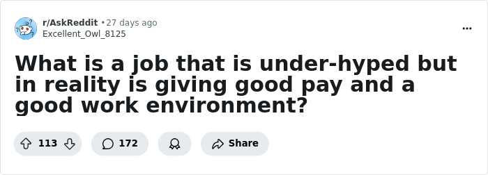 This list features some of those examples, as shared by people on Reddit. If you happen to be looking for a career change, here are some jobs to consider.