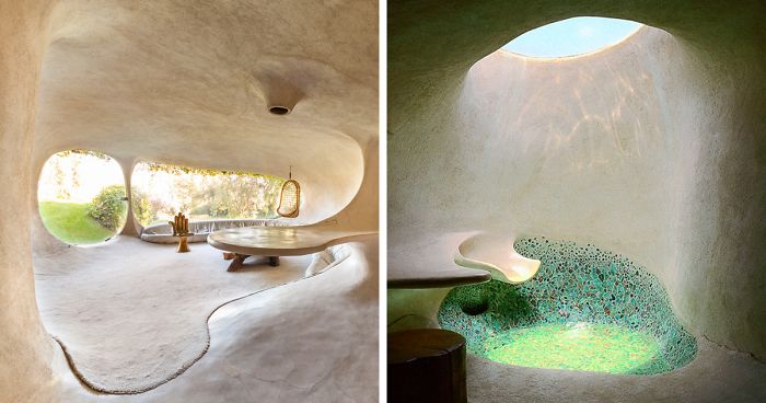 “The aim was to create surroundings similar to the maternal cloister,” the architect wrote on his website. “To the refuges of animals or to those of early humans, who made use of caves without modifying their environment, to igloos and all such sheltering spaces: concave like the arms of a mother cradling her child, continuous, ample, and comprehensive.”