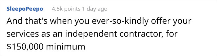 Load More Replies...Posted before about so I'll keep it short. Not IT, but supervisor got fired. I trained new supervisor. Got promoted. Owner saw I could handle it all. Fired other supervisor. Wouldn't give me more money. Said I needed to do more. I quit. Company folded not long after I left.