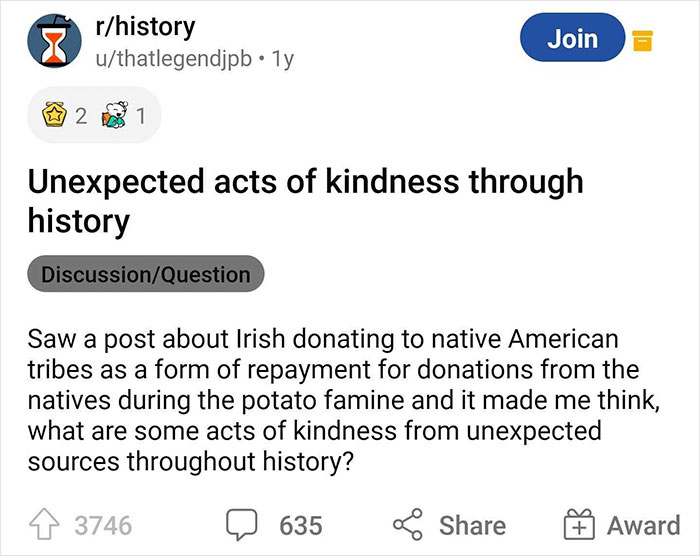 We discovered a post on the subreddit r/history that has plenty of these examples—it began when user ThatLegendjpb asked the community to describe their favorite unexpected acts of kindness. Turns out, there have been plenty of such instances!