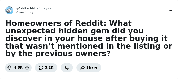 One Redditor asked people to share the hidden gems they discovered after moving into their homes, and the replies turned into a truly fascinating thread. Scroll down to see some of the best stories and let us know which ones surprised you the most!