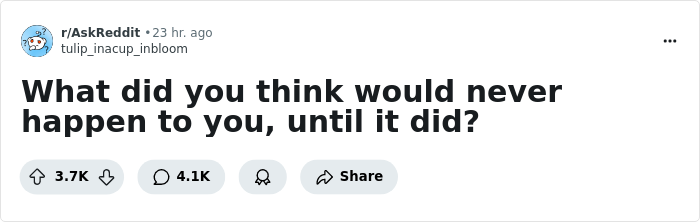 In the spirit of not knowing what to expect, here are a few things folks never thought would ever happen to them until they actually came true. These experiences show exactly how life keeps people on their toes.