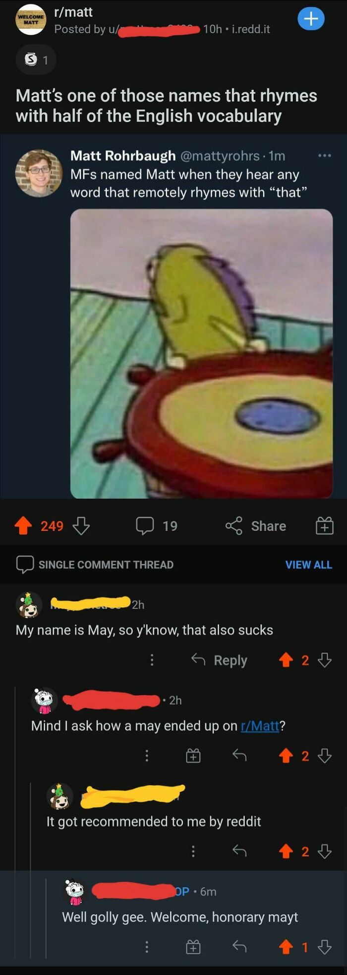 R/Matt May Be One Of The Most Welcoming Subs Of All Time