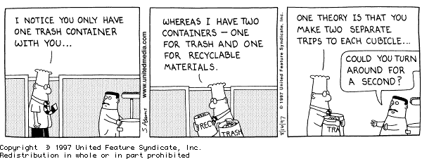 Yeah, but not really. According to the bin in this photo, NOTHING gets recycled. (Or maybe we should be optimistic and assume everything gets recycled? Na-aaah!)