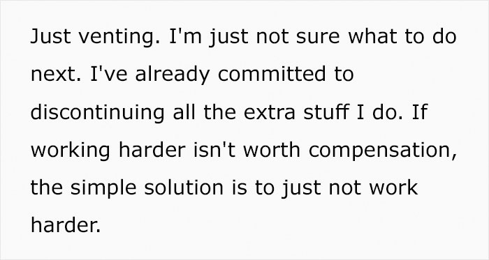 This story comes from an Imgur user who said he had been going “above and beyond” every day for the last 3 years until he finally asked for a merit raise. However, instead of an encouraging approval, the employee received a cold “no” without explanation.