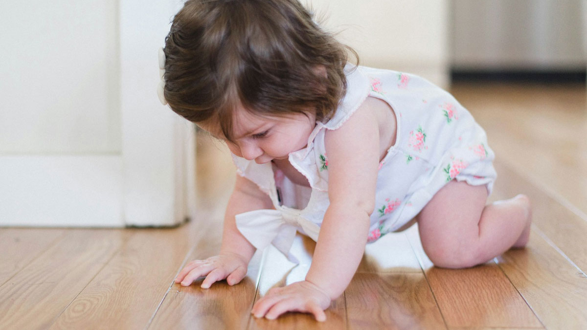 When I’m by myself and trying to get out of the house and the baby is begging to be held I throw cheerios onto the floor and let her crawl around to get them like a chicken