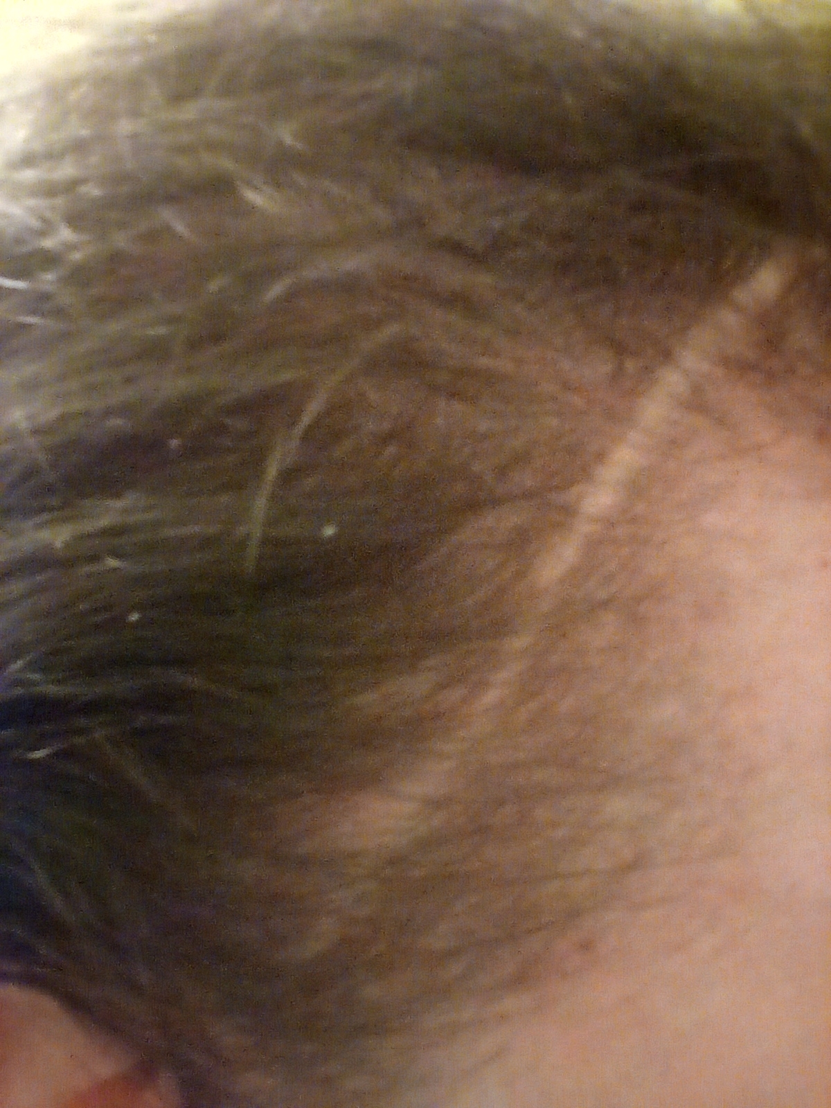 Load More Replies...I was born with a condition called craniosynostosis (premature fusion of the skull in utero). The specific type I have is trigonocephaly (premature fusion of the metopic (forehead) suture resulting in a triangular shaped skull. This scar goes all the way across the top of my head from ear to ear. Other symptoms include short stature and other bone deformities (follow up picture of my hand - both pinkies and index fingers are bent). I also have a lot of eye, ear, nose, and throat issues. 35 years old and just had my 29th surgery in January. IMG_202209...a04ab3.jpg