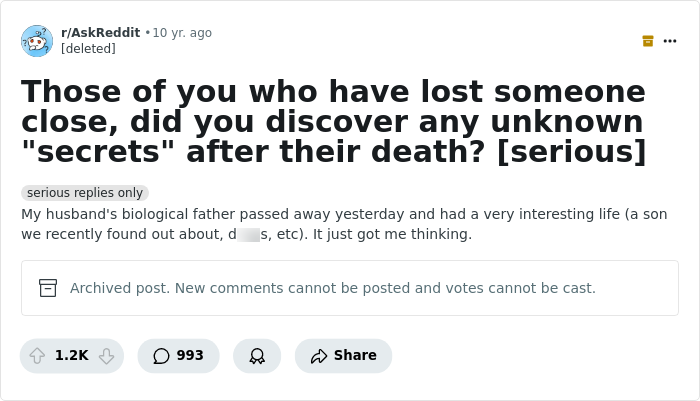 The internet recently lit up when a Redditor asked folks who lost someone close if they discovered any secrets after their death. And the answers are equal parts shocking, heartwarming, and straight out of a crime doc.