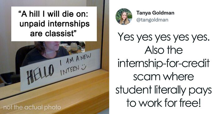 Load More Replies...When I went to college I did an unpaid internship. I also had to pay the college for the opportunity. As I remember it was the same price as having to take a normal college class, this was in the USA in the 90's