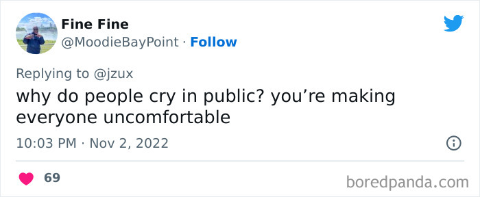I assume it's because they are overwhelmingly sad or happy and if you're uncomfortable then you should control that emotion as it's probably easier than what they are going through.