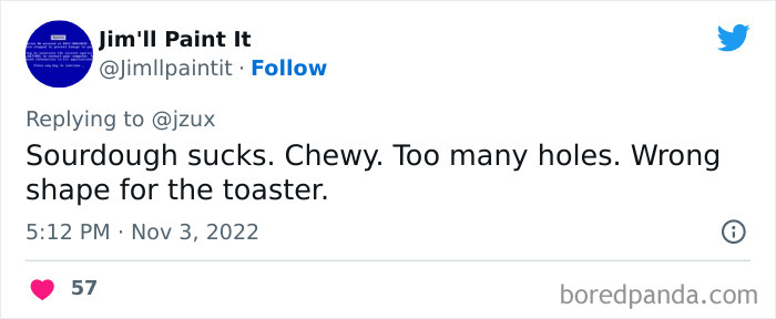 Coming from a country the "Bread Culture" of which has been recognized by UNESCO as cultural world heritage, I feel personally offended by this. "Wrong shape for the toaster" should never be a point on which to judge bread. Somehow the only bread Americans seem to deem acceptable is toast so sweet it would be considered cake elsewhere...