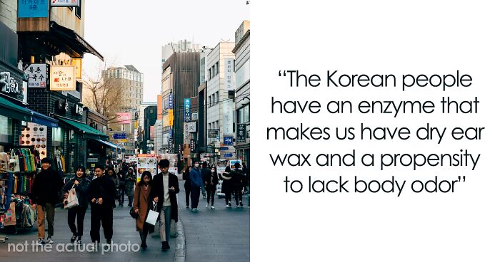 The Korean people have an enzyme that makes us have dry ear wax and a propensity to lack body odor.