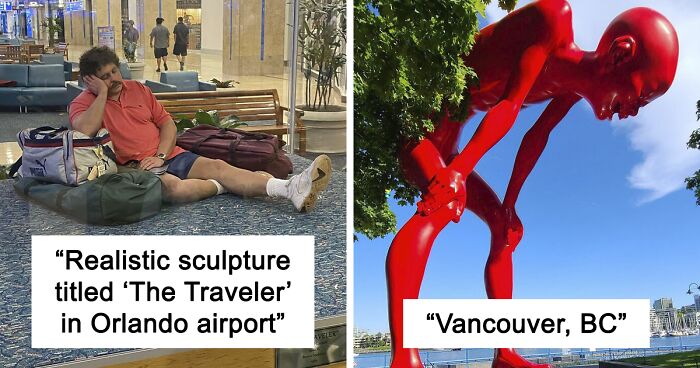 And yet: what's the deal with these phantasmagorical sculptures? Why are we so drawn to them? Part of the appeal of these strange and often unsettling works, we guess, lies in their ability to evoke a strong emotional response. Just take a look at “The Traveler” napping inside the glass cage of Orlando International Airport. It looks so real and relatable that it's pretty difficult not to be awe-struck by its hyper-realism. They challenge us to look beyond the surface and engage with art on a deeper, more meaningful level. Even if they remind you of Slenderman coming to life.