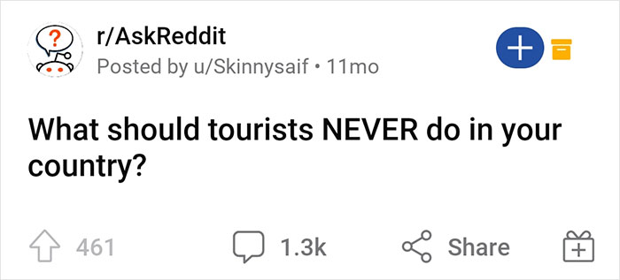 In an attempt to collect the most valuable travel advice, Redditor u/Skinnysaif asked other users: "What should tourists NEVER do in your country?" and luckily for them (and now us), people from all over the world replied, sharing tidbits of information that can make journeys to foreign lands a lot more pleasurable. Here are some of the answers.