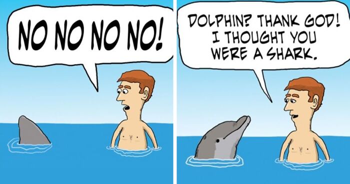 Chuck Ingwersen is an artist who creates comics, cartoons, and artwork "on a wide range of fun swag". These comics cover a lot of funny and silly situations, from a cat at a job interview, contemplating chickens, to sharks looking for something to eat. On Instagram, Chuck is known as Captainscratchy and has more than 4,000 followers. The webcomic features dogs, cats, bears, horses, beavers, sharks and other animals. All the comics are fun, easy to read, and will probably make you grin. We hope that they will brighten your day!