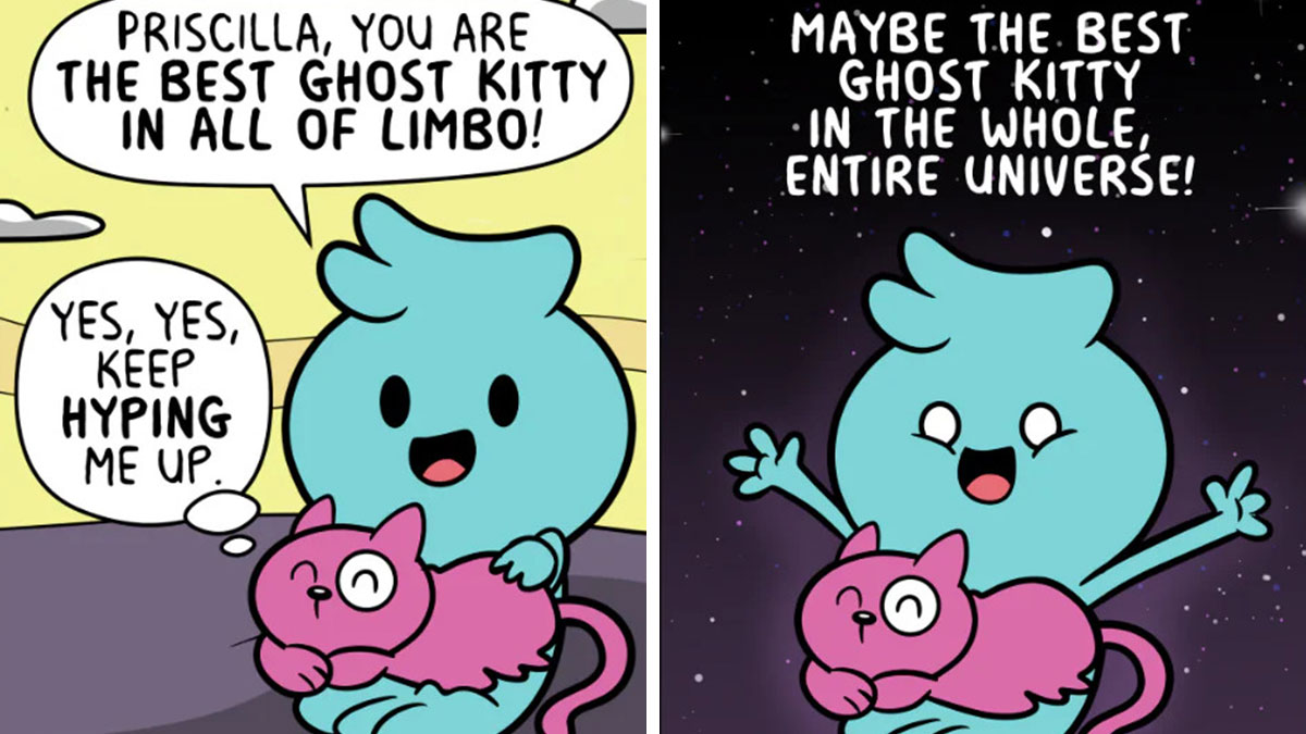 Positively Ghostly is a wholesome comic created by Greg Eales, who launched the series in 2020. The webcomic features two main characters: Oliver, a friendly little ghost, and his spooky-but-sweet companions, the Boo Crew, in the whimsical Spirit World. The series explores themes like kindness, self-acceptance, mental health, and finding joy in everyday moments, all delivered with heartwarming humor that readers of all ages can enjoy.