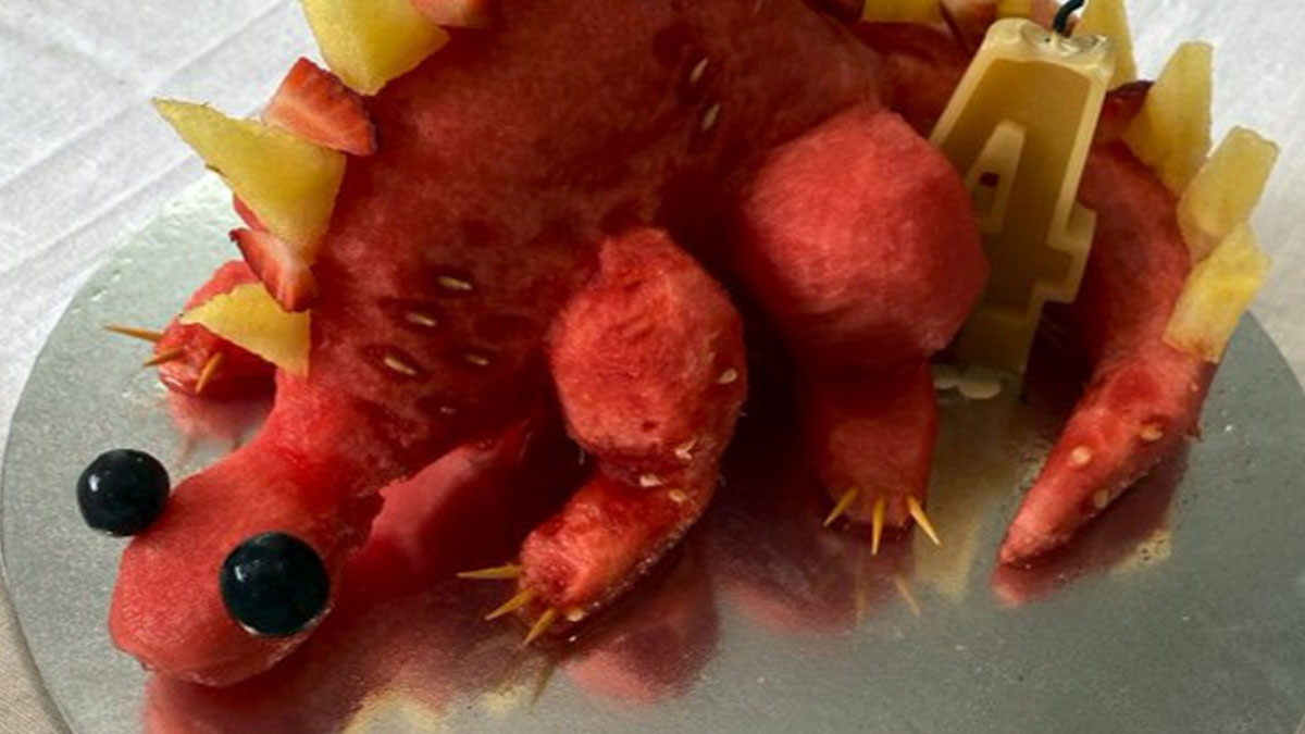 Brother Makes A Dinosaur Watermelon Cake For His Nephew With Food Allergies