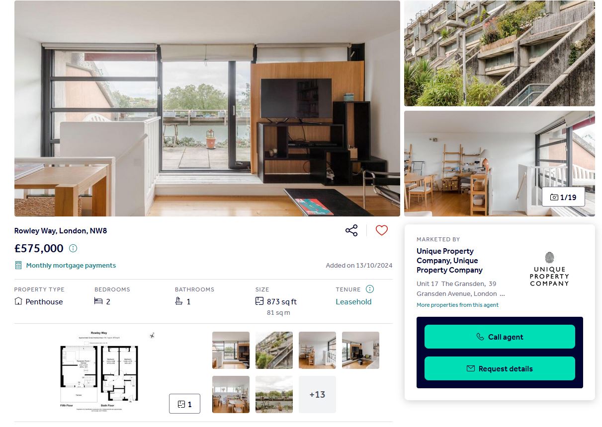 Specifically Alexandra Road Estate in Camden. 1 bed, 1 bathroom for £345K.