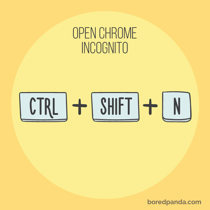 Want to check something you want nobody to see in your browsing history? Quickly jump to the incognito mode by pressing this combination. Mac: command+shift+n
