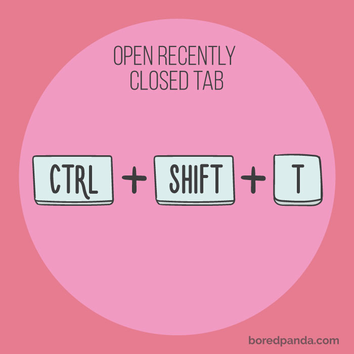 This happens even to the best of us. You’re in a hurry and you accidentally close a very important tab. Want to undo your mistake? Ctrl+Shift+T will do the trick! Mac: command+shift+t