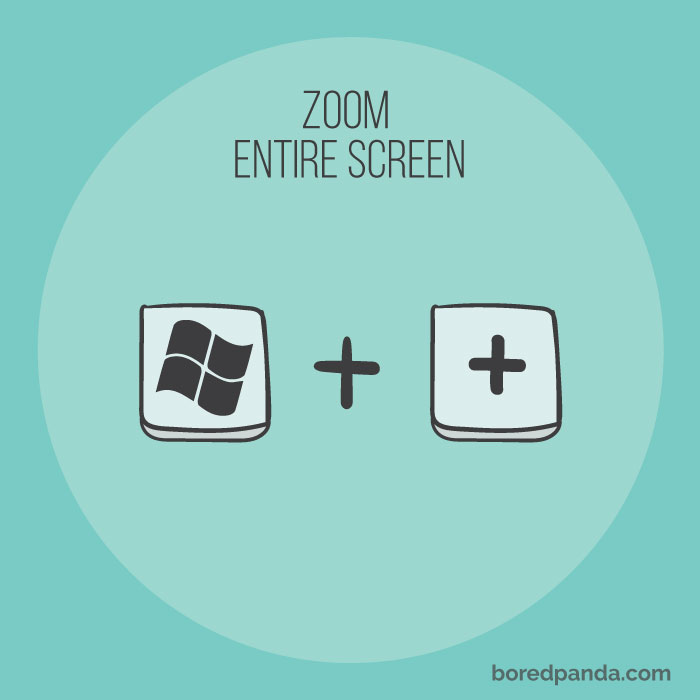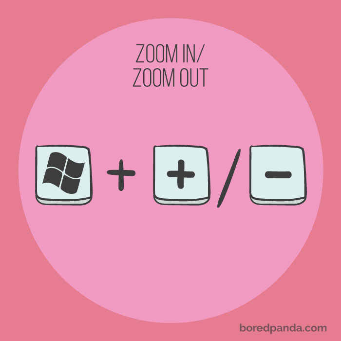 Windows+ +/- Somebody tagged you in a picture? Want to check your hair and makeup up close to see if everything is on point? Using this shortcut will save you some time! Mac: Command +/-
