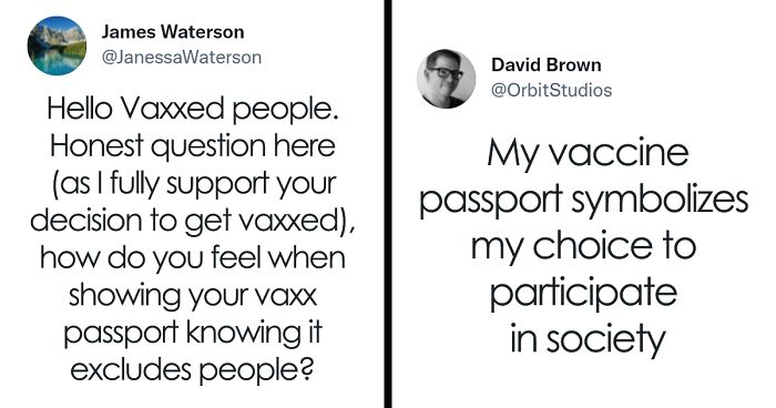James Waterson from Alberta, Canada, is one of them. However, Waterson recently decided to explore this topic deeper, so he made a tweet, saying: "Hello Vaxxed people. Honest question here (as I fully support your decision to get vaxxed), how do you feel when showing your vaxx passport knowing it excludes people? [sic]"
