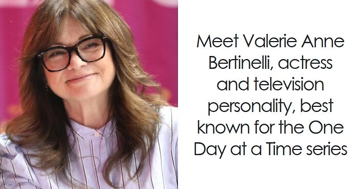 Valerie Anne Bertinelli is an American actress and television personality known for her warm, relatable presence and versatile performances. She has charmed audiences across decades with both comedic and dramatic roles.