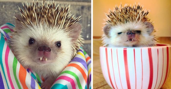 Meet Huff, a 3-year-old rescue African Pygmy hedgehog from Utah whose adorable fangs have earned him a following of 12k people on Instagram. Otherwise known as Sir Hodge Huffington the Cricket Slayer, the cutie-pie was adopted by student Carolyn Parker after his previous owner treated him badly.