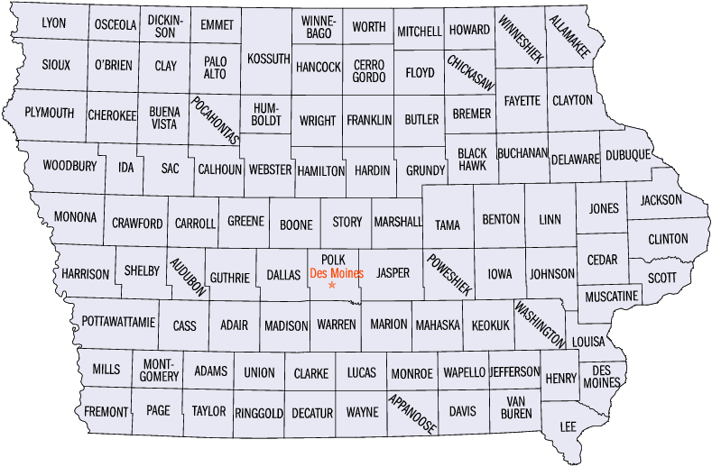 Get to Iowa and it’s all squares. It’s almost terrifying how un-gerrymandered it is. Iowa_count...es_map.png