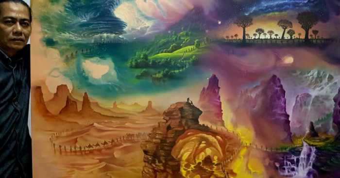 “The World of Nature is a world of wandering, a long and winding journey, a wheel of life that continues to spin and is subject to time and space. We are just as travelers or just a stopover in this world the final destination is actually the world of the hereafter, then ideally we must provide the best and provide maximum benefits for humanity and the universe because we are essentially the caliph (leader) on earth , so that our final destination can be safe and happy (heaven) or vice versa (hell). The world is full of tests of comfort and discomfort, this nature will determine the position of humans in the final destination, “he concluded explaining at length the themes of some of his recent paintings.