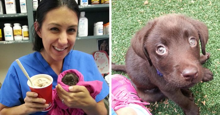 Vet Saves Chocolate Lab Puppy No Bigger Than Chocolate Milkshake From Euthanasia And Then Adopts It