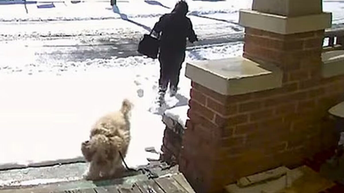 Dason Garner saw doorbell footage of a person, later identified as Ashley Baker, walking up to a neighbor’s front porch, dropping off the canine, and running away.