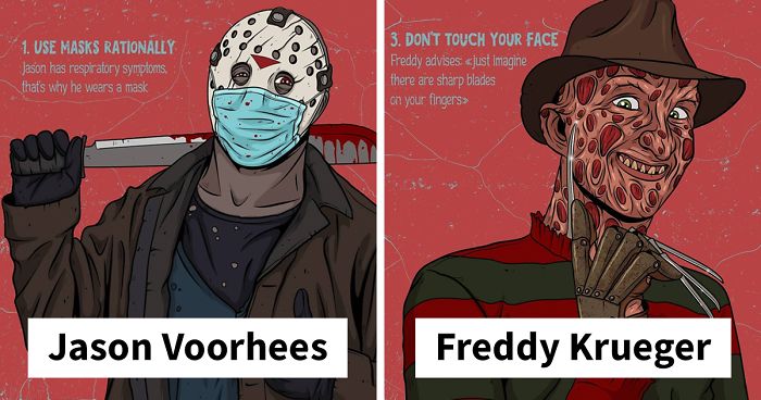 While the fight with the invisible enemy COVID-19 is far from over, we need to do everything in our power to prevent the virus from spreading further. Moscow-based illustrator Anastasia Panina, better known as Anastasia in Red on her social media accounts, decided to create humorous illustrations of famous horror movie characters giving advice on how to fight the virus. Compared to other instructions on social media, these ones are engaging, humorous, and thus fun to read!