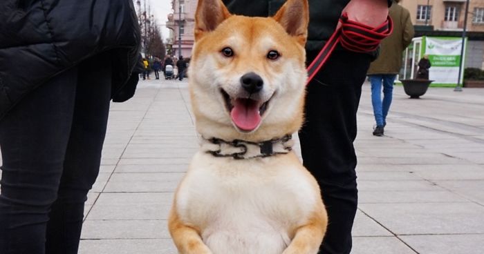 This is a Shiba Inu named Shiba. Even though no one ever taught her how to walk on two legs, it's her favourite activity.