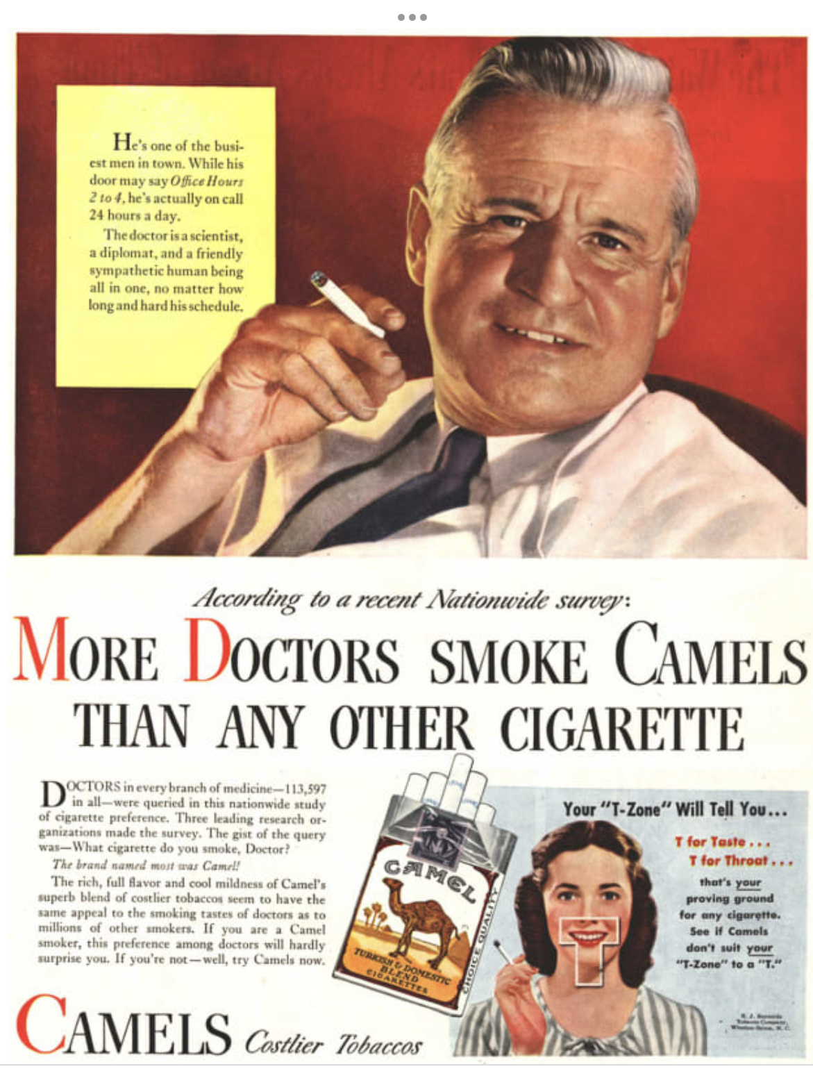 One of Philip Morris' slogans was 'The doctor's choice is America's choice'. So clearly doctors can't even decide which brand they prefer lol