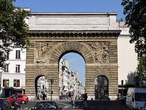 The arch of the " Porte Saint-Denis " viewed from the Rue du Faubourg Saint Denis Paris 10th district, in 1914. one of the gates of the Wall of Charles V, one of the now-destroyed fortifications of Paris. https://en.wikipedia.org/wiki/Porte_Saint-Denis