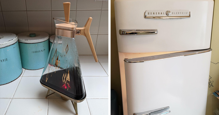 “It features space-age forms, new state-of-the-art materials, the fusion of natural and manmade elements, organic and geometric shapes, bright and bold textile designs, and bright colors. Materials like lucite, chrome, bakelite, and fiberglass are integrated in our homes and fashion,” Lori told Bored Panda.