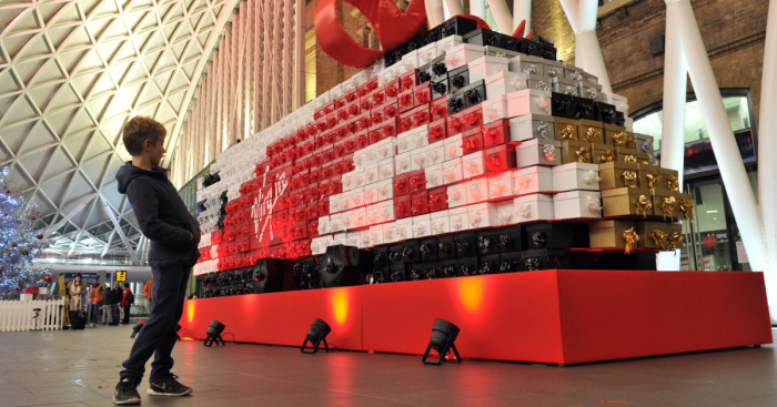 On Tuesday 13th December, a model of the Virgin Azuma train, which comes into service on the East Coast route in 2018, will be presented to passengers travelling through King’s Cross. The 12m long by 2m high replica has taken a team of eight 1,500 hours to build. It consists of over 1,000 individually wrapped presents, including iPads, folding bikes, Virgin balloon rides and pamper days, robotic dogs and a lorry load of chocolate. A replica of the iconic Pendolino train, which is also made up of 1,000 presents, will be unveiled at Birmingham New Street station on Thursday 15th December.