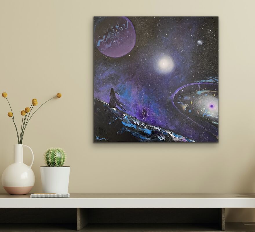 It is my wish to invite the viewer to do some self-reflection and connection with their inner self. By questioning what we perceive with our senses and how we have been taught to look at the external world, we can connect with our inner world, which then interrelates with the whole universe. By claiming our real place in the web of life, we empower ourselves. By deepening our perception, we are reminded of our unity with spirit and the sublime beauty of nature and the cosmos.