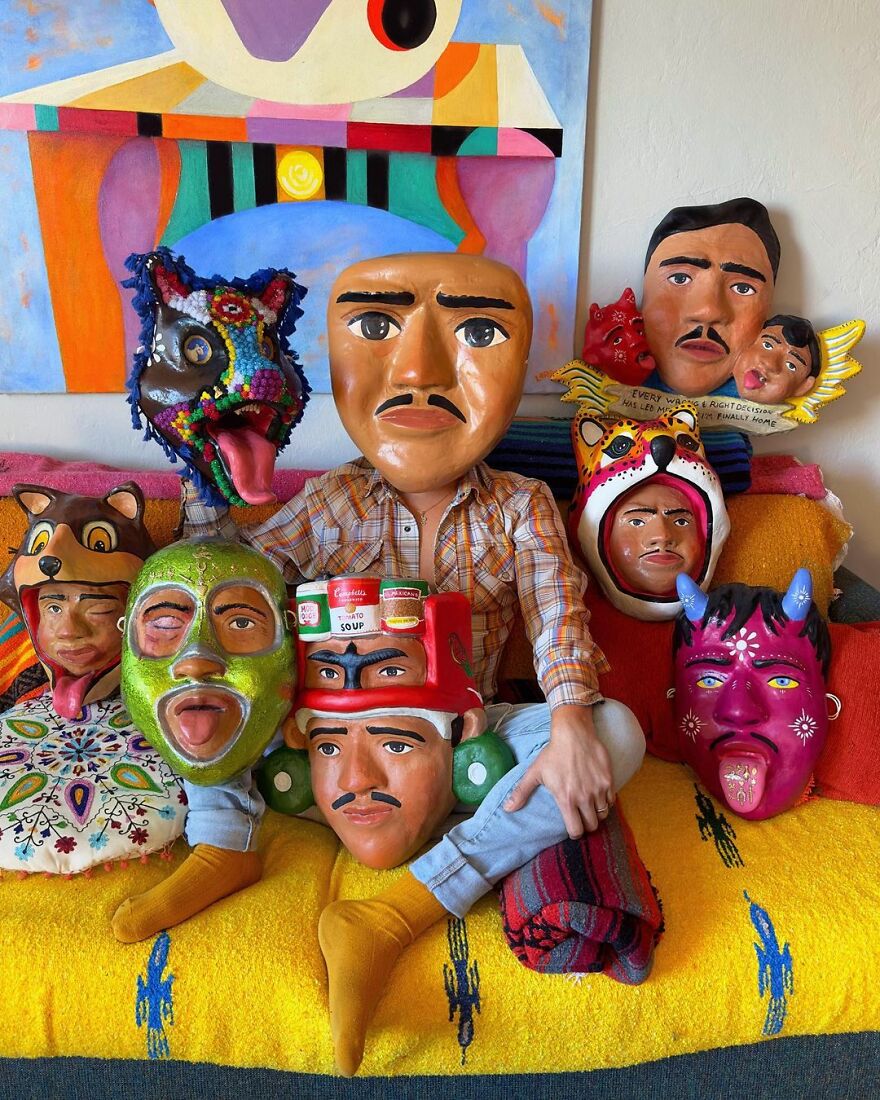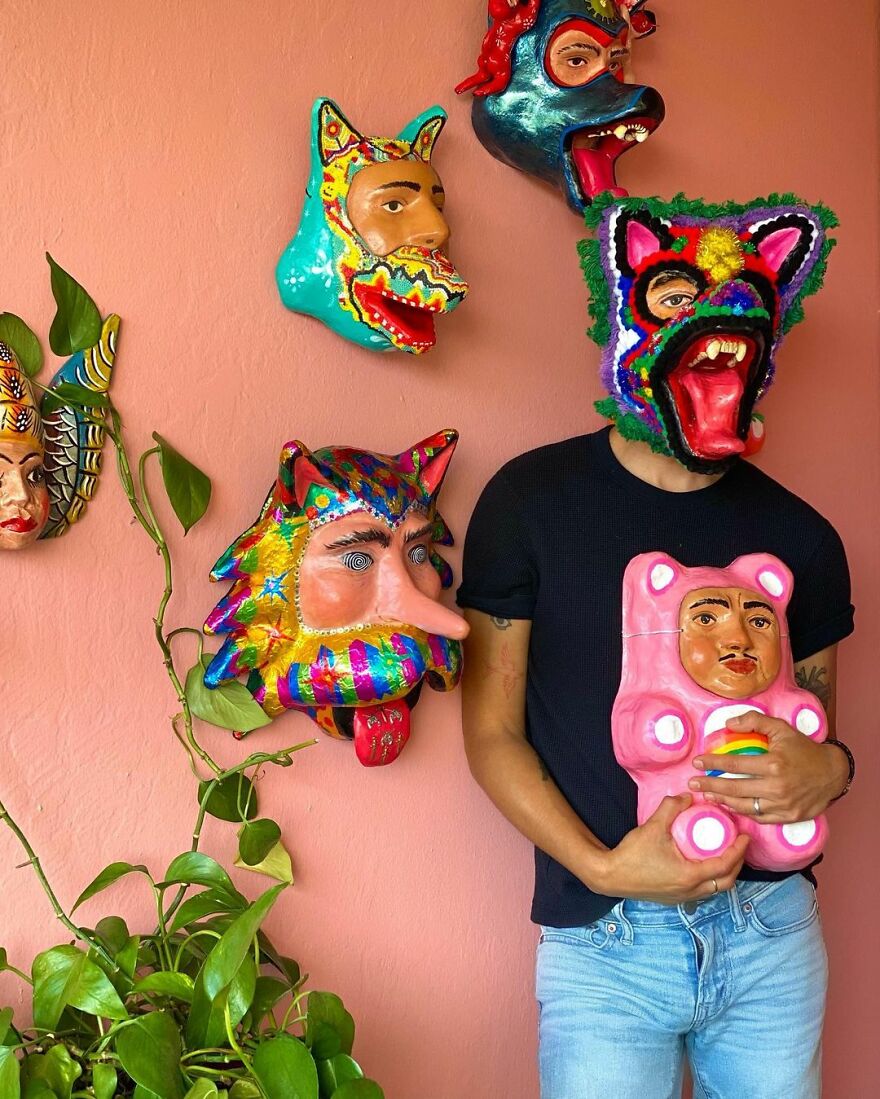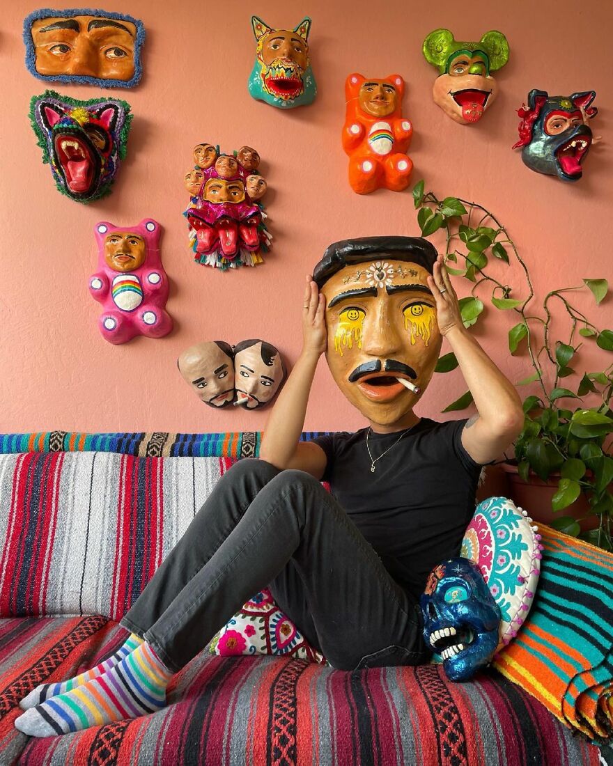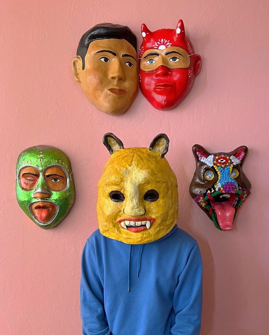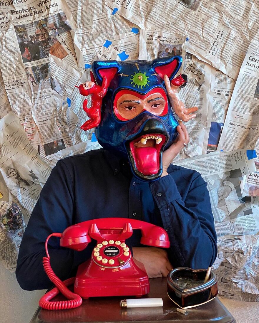 The artist shared with Bored Panda what his work is all about: "I mainly focus on making masks and playing with the exploration of identity and the masks that we wear, digital or emotional, to navigate the world."