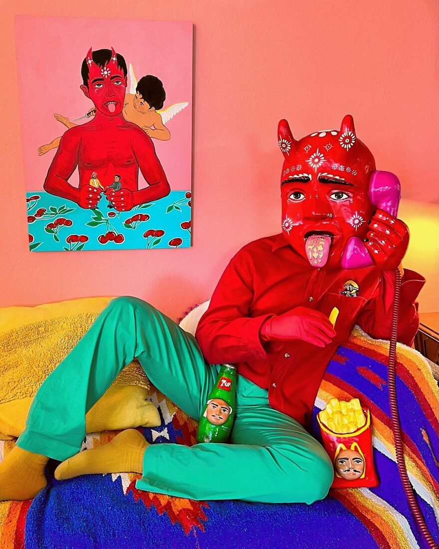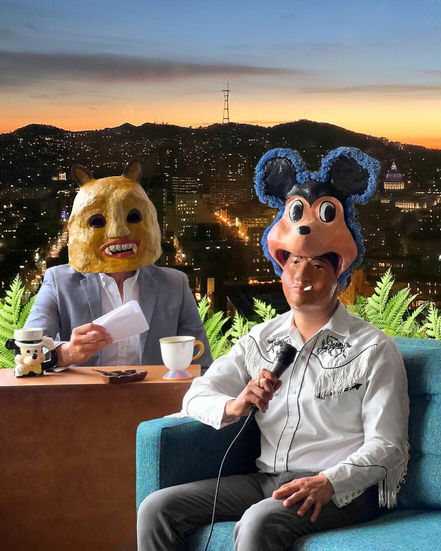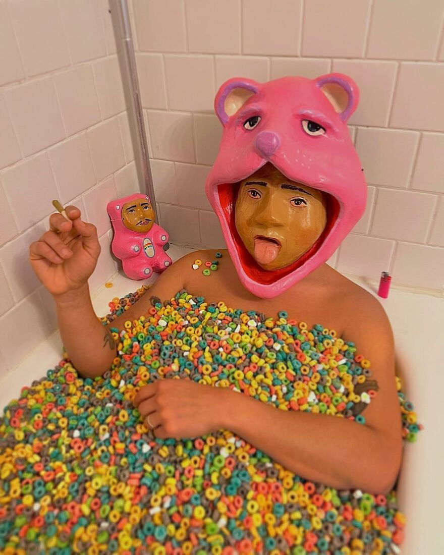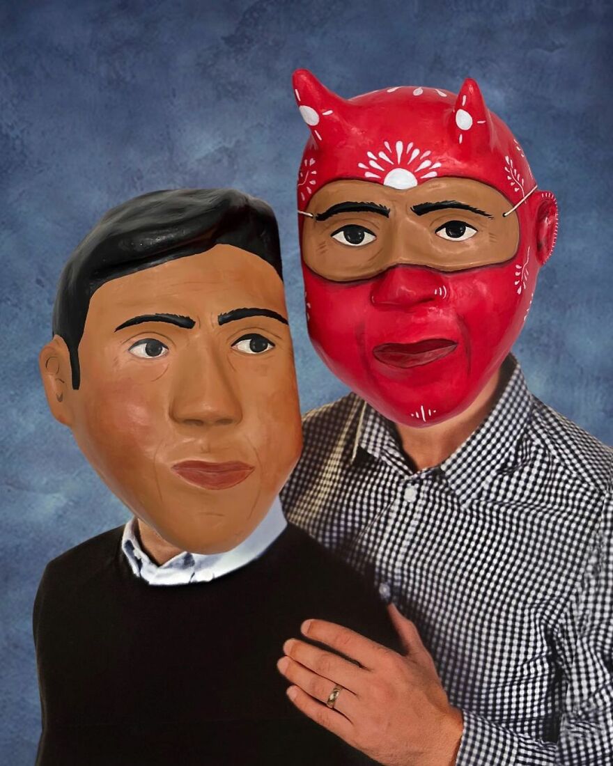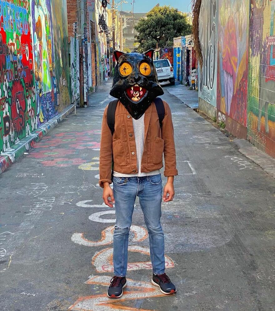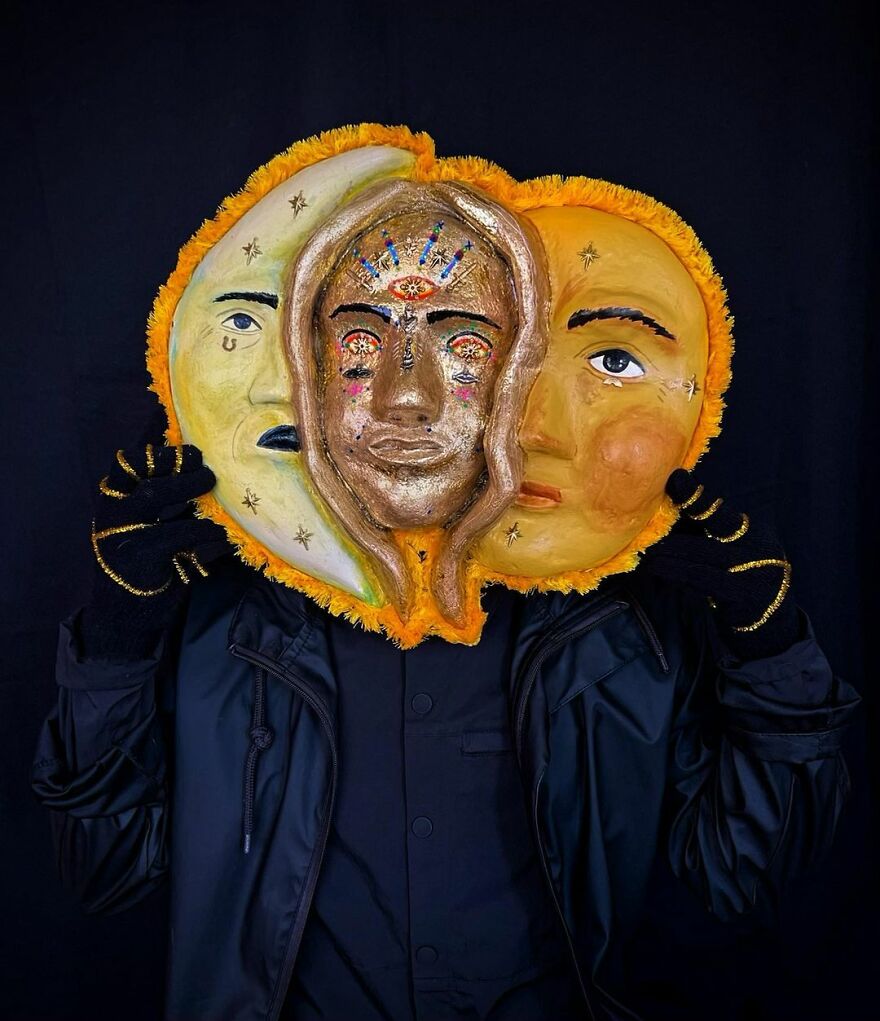The artist shared with Bored Panda what his work is all about: "I mainly focus on making masks and playing with the exploration of identity and the masks that we wear, digital or emotional, to navigate the world."