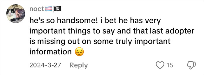 Turns out, the new owners didn’t like how vocal the cat was, as it didn’t fit in with their lifestyle