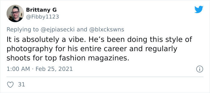 Load More Replies...I don’t see what’s wrong with this. Professional photo shoots, while an art, can also project a false image of what people actually look like; particularly those that are published in a magazine for the world to see. Who really cares if it looks like “anyone” can take those photos....that’s part of the point