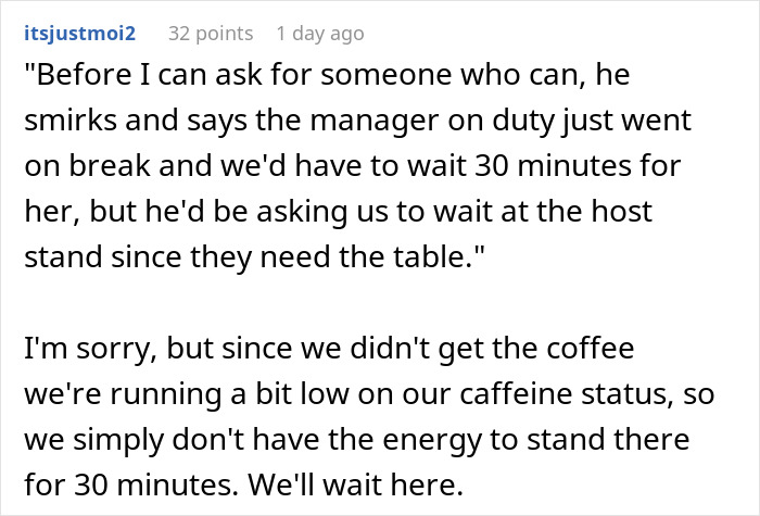 Load More Replies...My impression on reading this was that you and your sister were incredibly gracious in an unexpected confrontation. I would not have handled it nearly as well. But, then again, I don't drink coffee!