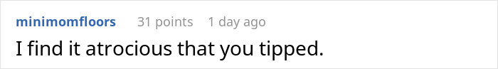 Load More Replies...This is a bit off the subject but it does involve tipping. Many restaurants will ask if you want to add the tip to your credit card instead of tipping with cash. My wife and I were low on cash but wanted to be generous so we added the amount tipped to the card. When we got our bank statement we found out the restaurant had doubled our tip. We also had a situation in our local restaurant where the waitress didn't receive the tip at all. I made a point of asking her if she received it the next time we went in. Maybe she didn't or maybe she was lying. I didn't want to be a "weenie" and just to be safe handed her a cash tip to make up for it. Moral of the story: If you are going to tip I'd advise using cash and give it directly to the waiter or waitress. They break their backs and most of the time fully deserve a generous tip.