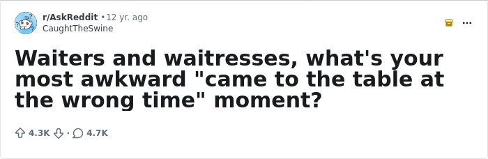 In a hilarious online thread oozing with secondhand embarrassment, servers opened up about their most awkward moments at work, when they came to the table at the worst possible time. Proposals-gone-wrong are just the tip of the iceberg of cringe. Scroll down to read their stories, and remember to be kind to your waiters! Don’t subject them to your nonsense.