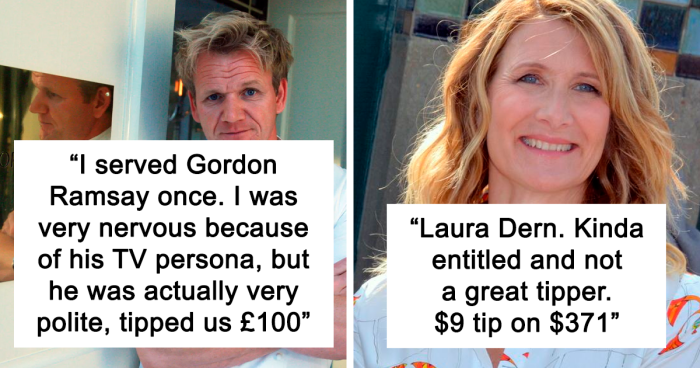 Yet some customers are more keen on tipping than others; and celebrities are no exception. Redditors on the ‘Tales From Your Server’ subreddit shared stories about the time they encountered a famous person at work, covering how well they tipped. It started when one of the members asked the community what celebrities were a good or bad experience to deal with, and quite a few people were willing to share. Scroll down to find their answers on the list below.
