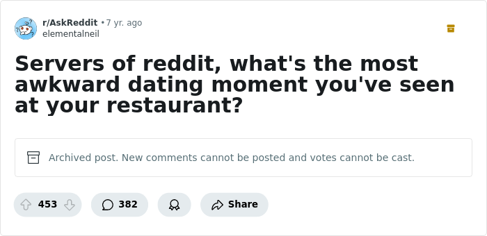 We’ve gathered stories of awkward and unhinged date moments as shared by restaurant workers from across the internet. So get comfortable as you scroll through, upvote your favorite and if you’ve overheard or sat next to a date gone wrong, feel free to detail the story in the comments down below.