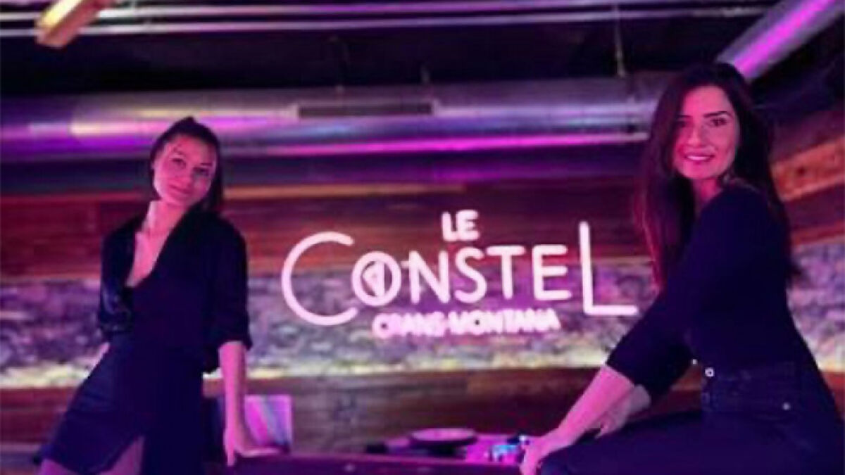 Two women posing inside a dimly lit bar with neon lighting, related to waitress who escaped Swiss bar fire story.