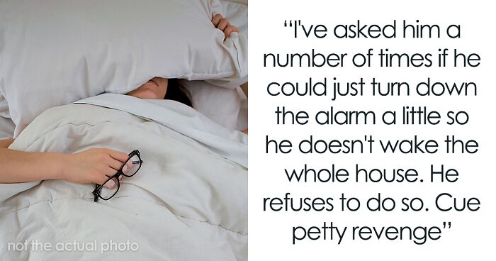 Load More Replies...You are basically making sure he is up in time to go to work. Not exactly what I'd call revenge, but hey if it makes you happy. And who the hell sets an alarm at 5:30 if they have to leave the house at 5:40? That's insane. How can you be presentable and coherent with 10 minutes from alarm going off to leaving the house? I have to leave the house at 7 to be to work on time, and I usually get up between 5 and 5:30.